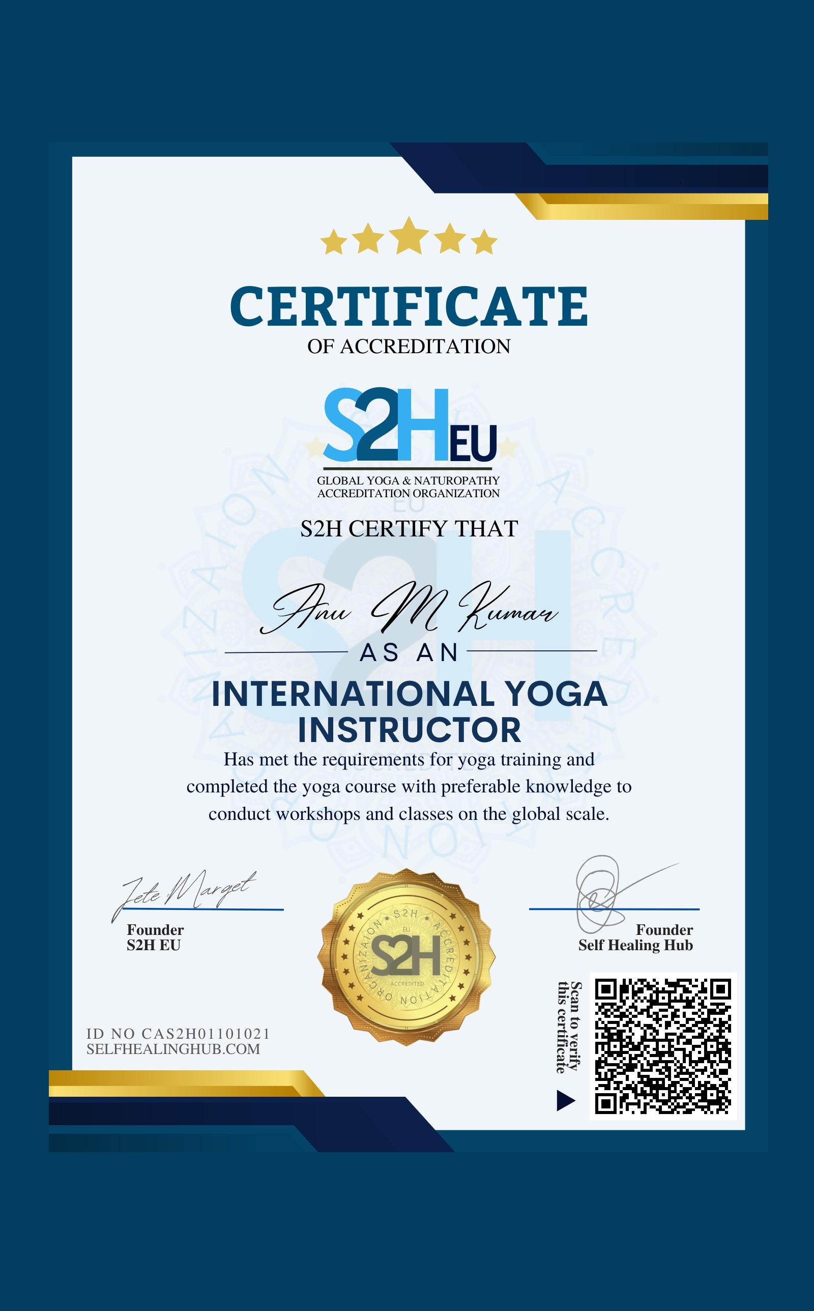 Your partner in professional development for yoga teachers and organizations. S2H is an EU registered worldwide organization with a strong track record of providing reliable and credible accreditation and certification services for yoga professionals.