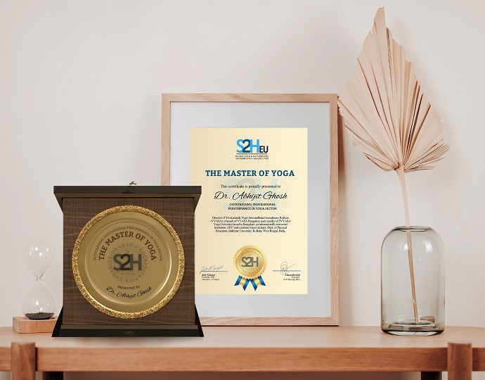 Introduction of the Award: The award titled “The Master of Yoga” is intended for a few Yoga Teachers who have higher academic education in the field of yoga like PhD or any equivalent degree. He or she is a scholar who might have 12 years of professional experience or more in the field of teaching yoga. He or she is established on the yogic philosophy of life and is well famed for his or her proven contributions to teaching and promoting yoga and the yogic philosophy of life. This award is a humble recognition of the invaluable contribution of the yogi.